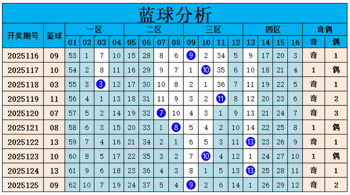 上期回顾:双色球第2025125期开出奖号:红球03、09、12、13、26、32;蓝球09